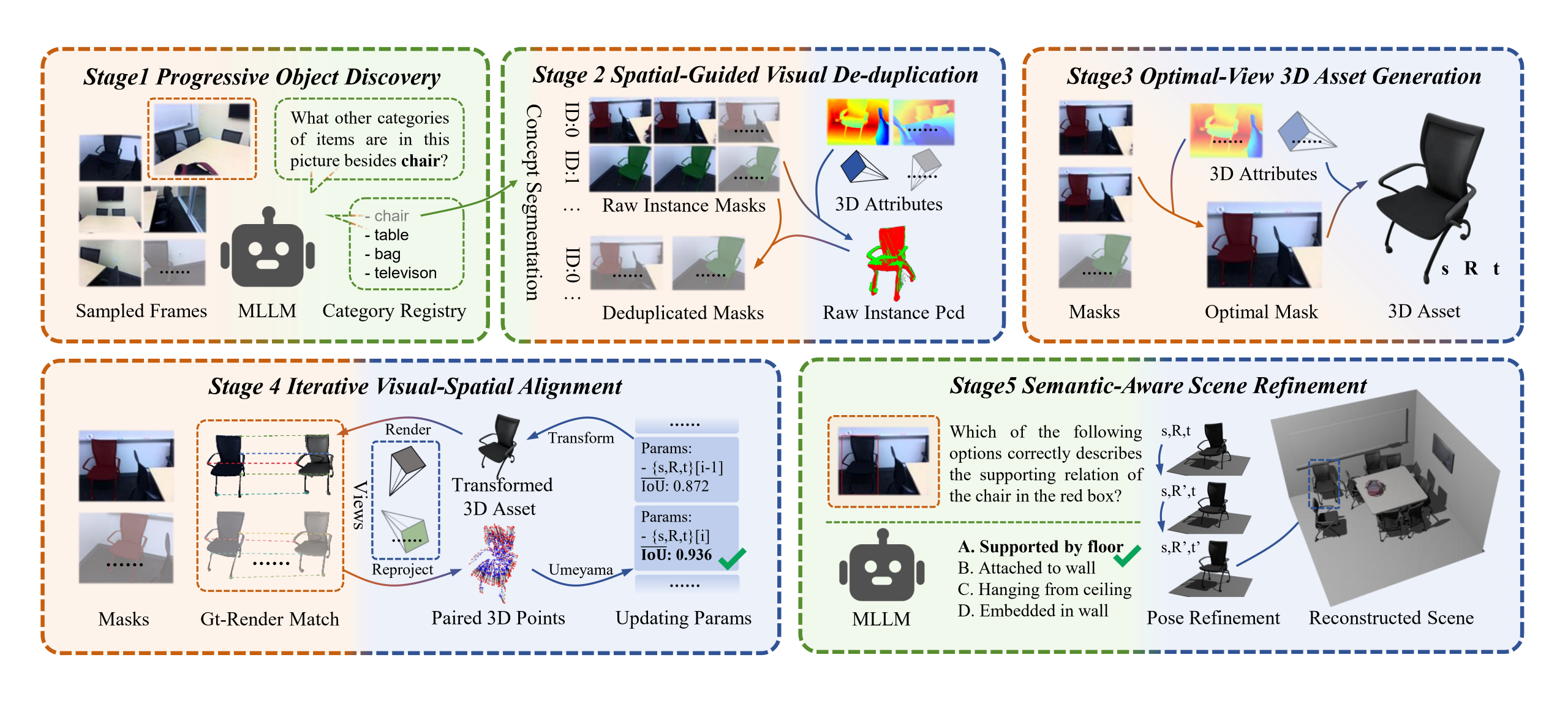 Overview of ReplicateAnyScene. We present a zero-shot video-to-3D composition framework based on textual-visual-spatial alignment for transforming casually captured videos into compositional 3D scenes.